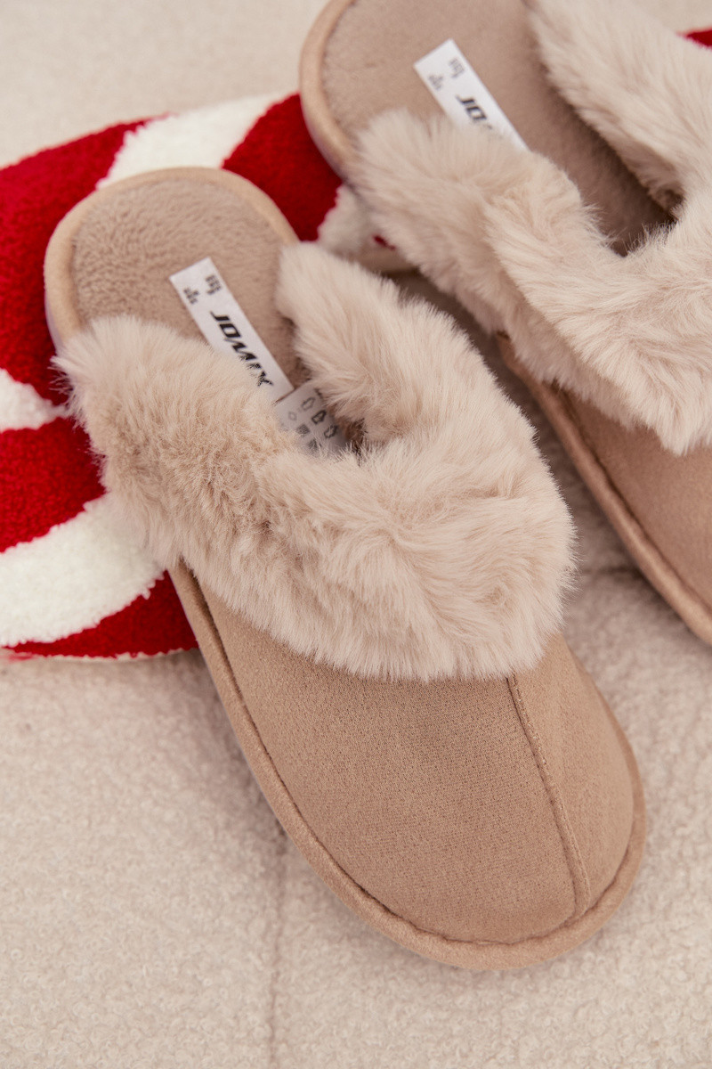 Pieskové dámske šľapky s kožušinou Carisse