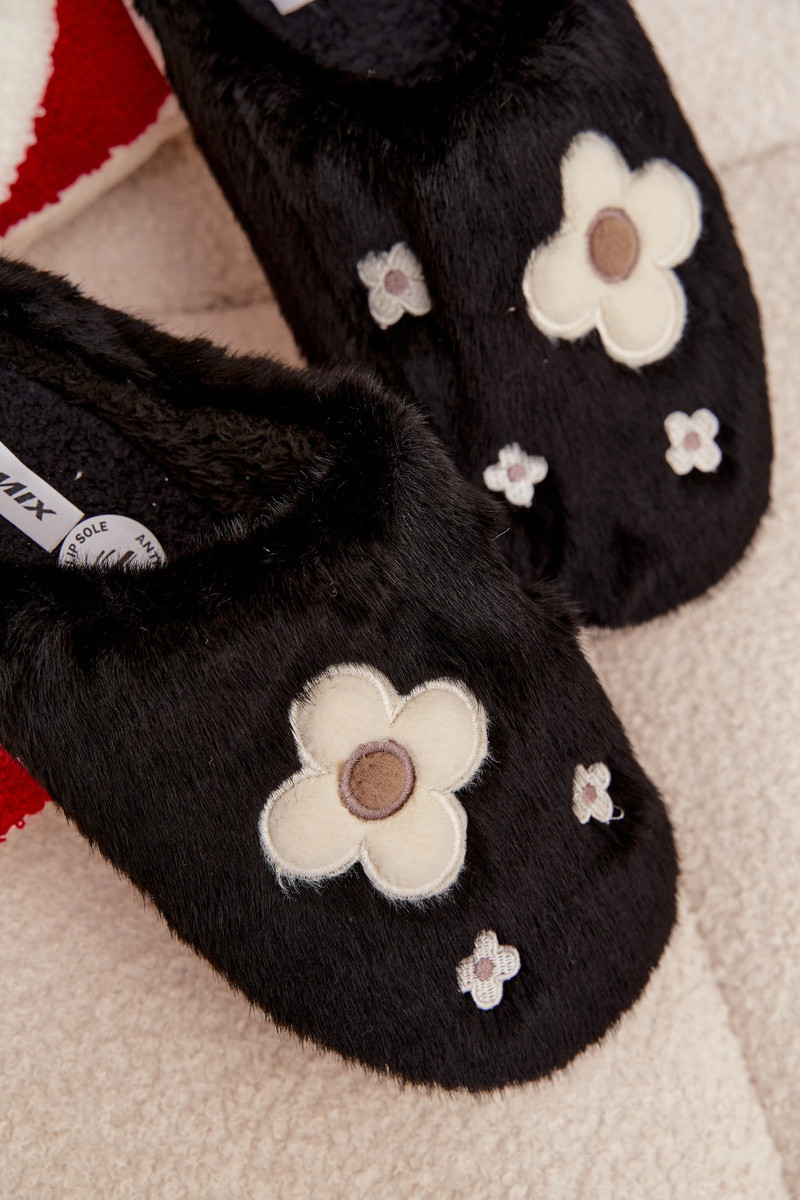 s kožušinou Papučes kvetinovými motívmiuszkami čierna Selinne