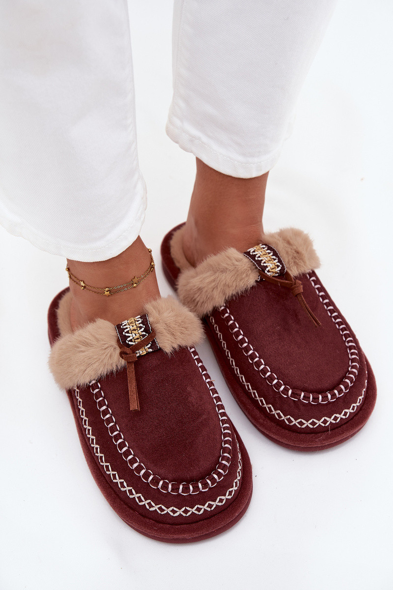 Papuče Dámske s kožušinou I Haftem bordová Perivelle