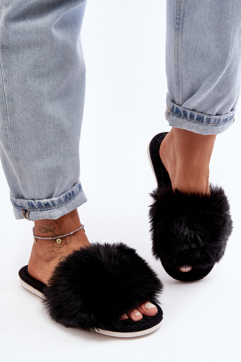 Dámske šľapky s kožušinou čiernej farby Vienitta