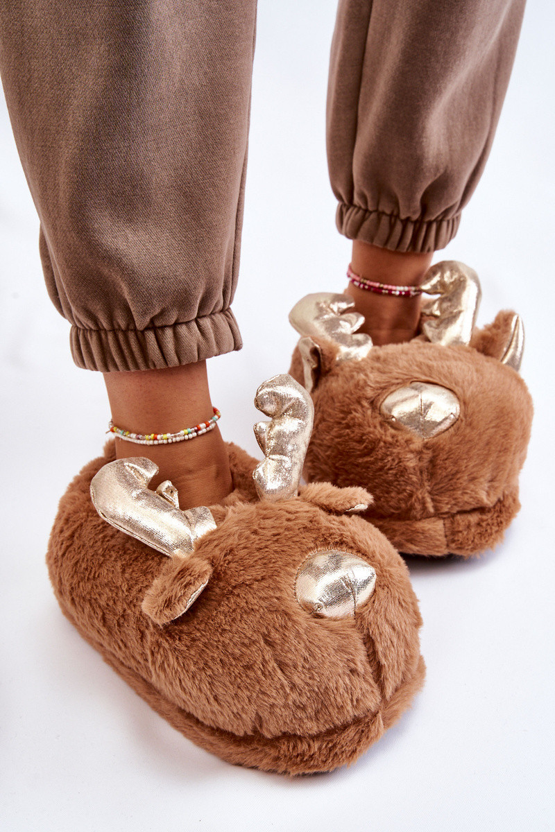 Dámske nazúvacie papuče s kožušinou Reindeers hnedej farby Comet