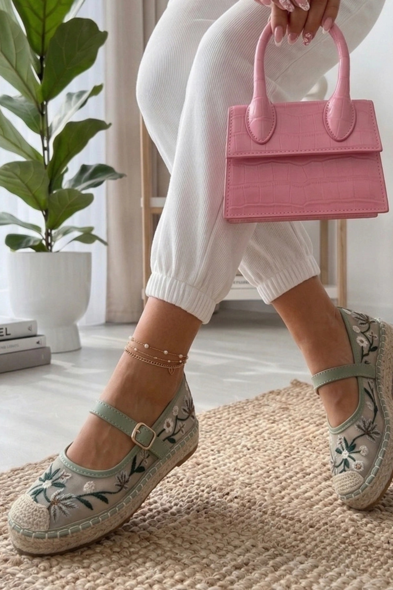 Zelené espadrilky ozdobené vyšívanými kvetmi Lucille