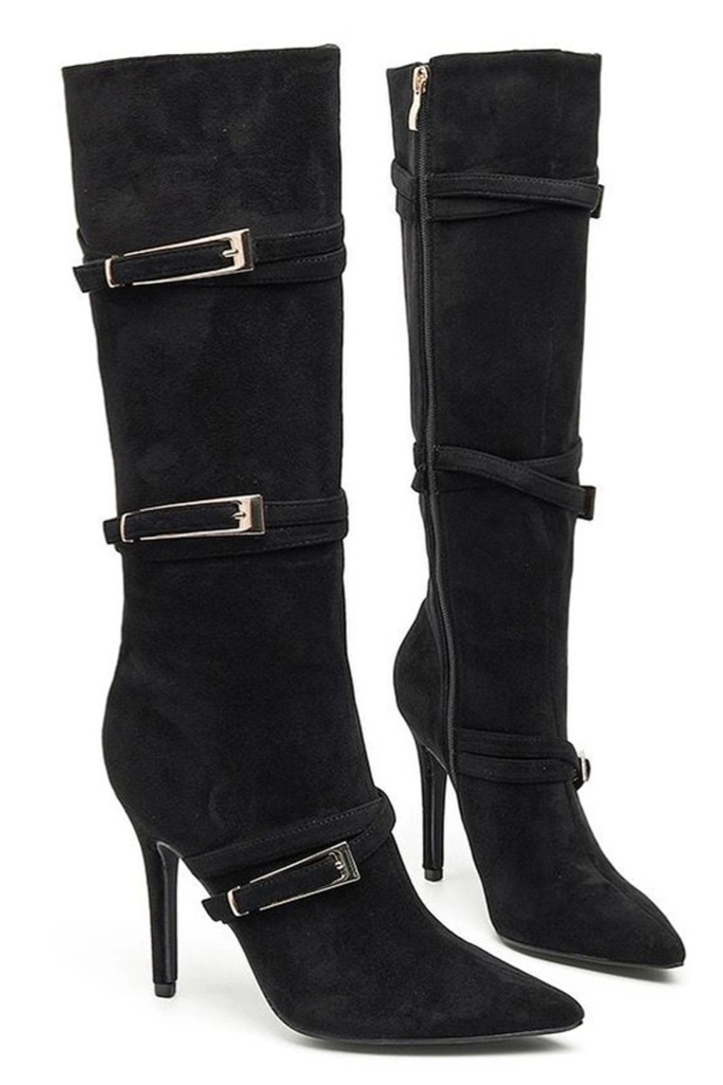 Čierne dlhé čižmy na tenkom podpätku s dekoratívnymi prackami Sadie