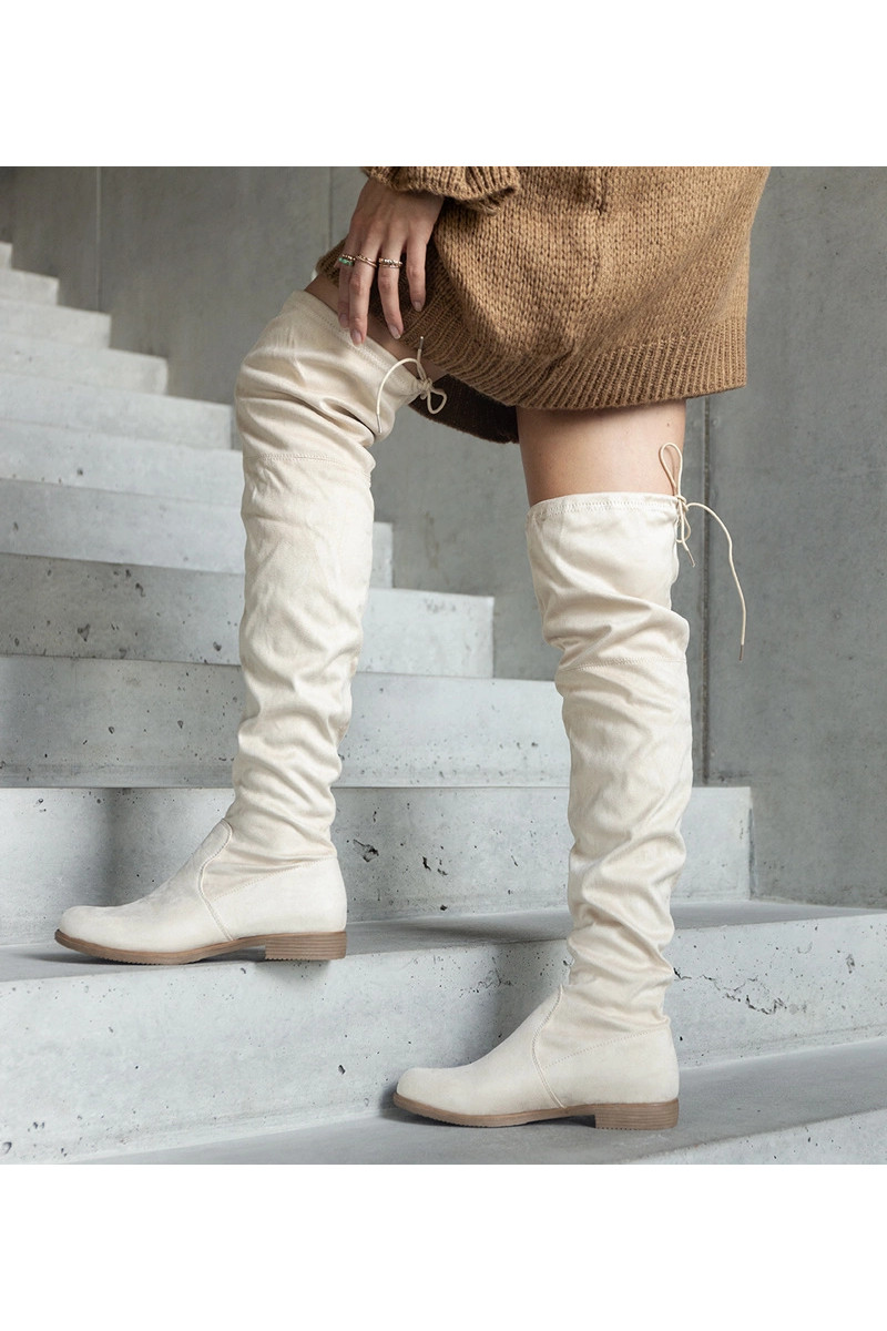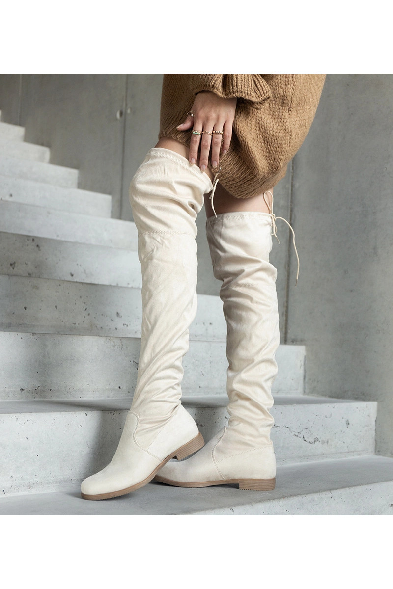 Béžové dlhé čižmy na platforme z eko-zamszu Hallora