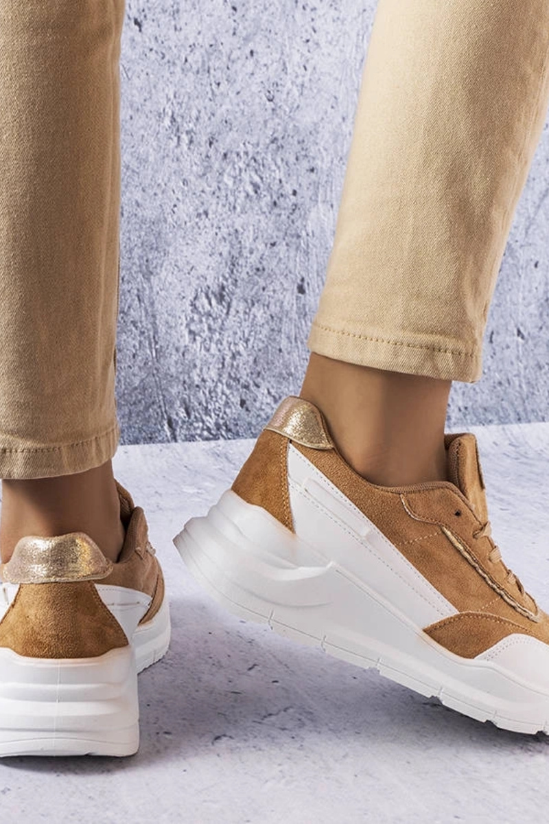 Kožené perforované športové topánky na hrubej podrážke biele-pieskové