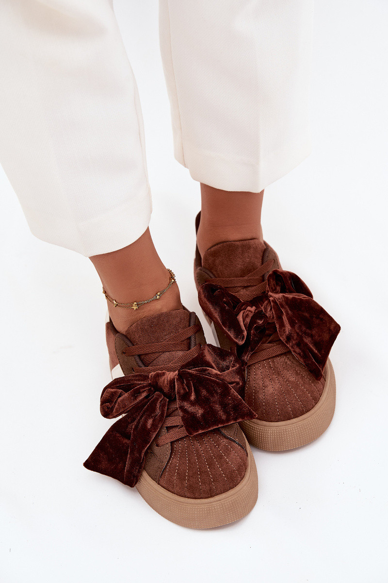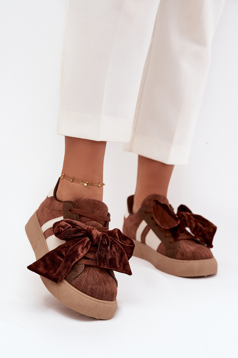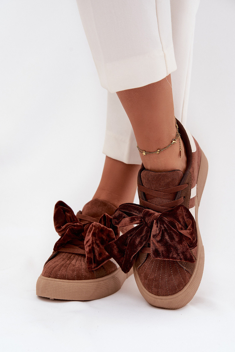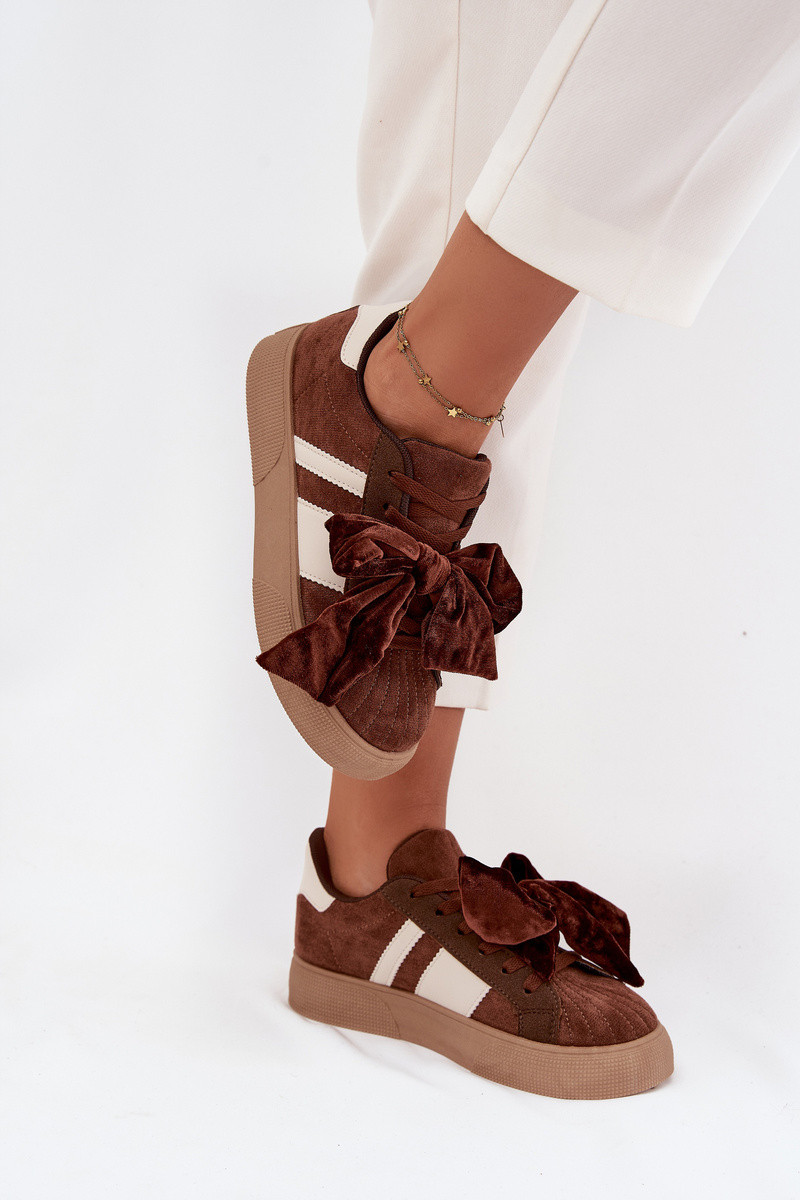 Dámske športové topánky s velúrovým uzlom, hnedej farby, Ashlyn