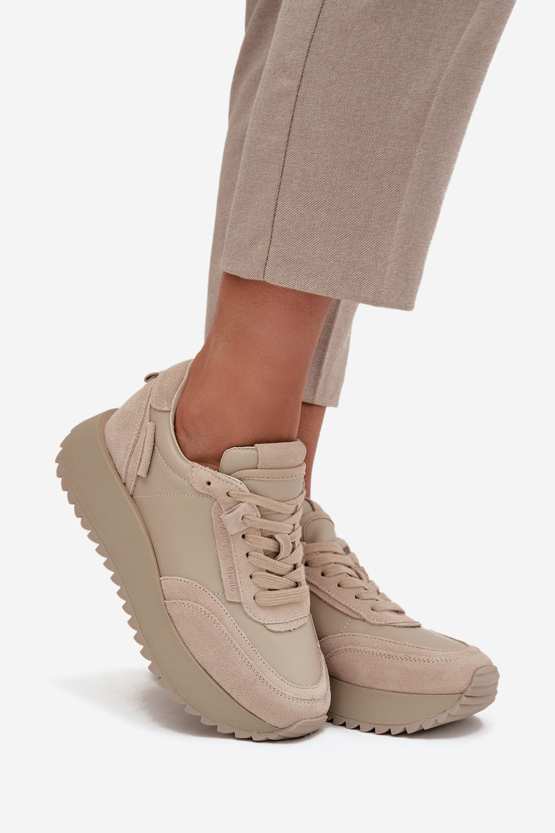 Kožené Tenisky model obuvi Dámske s platformou Artiker 55C0021 béžová