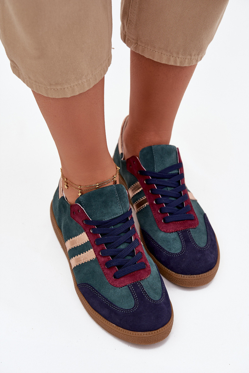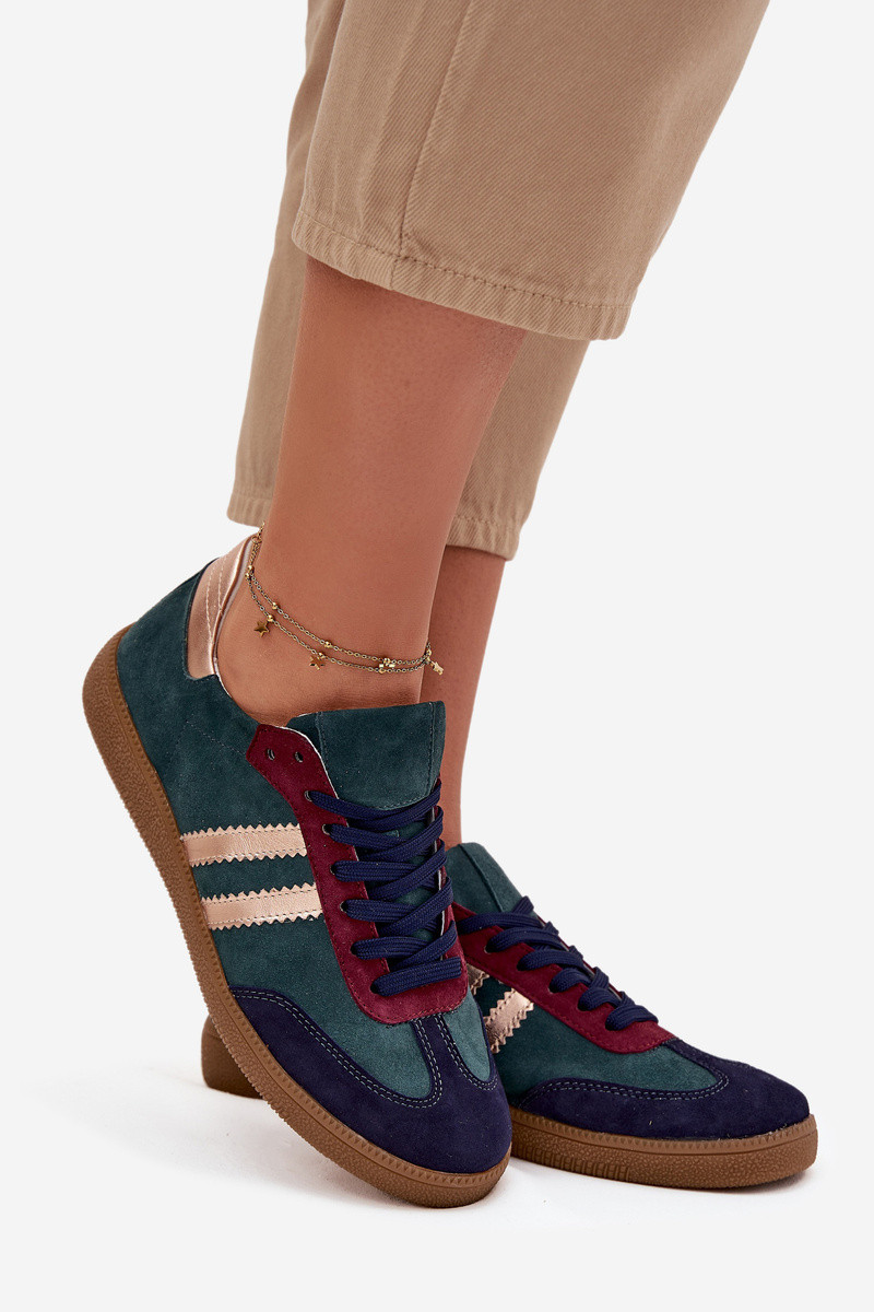 Zazoo N1068 semišové nízke športové tenisky dámske farby fľaškovozelenej