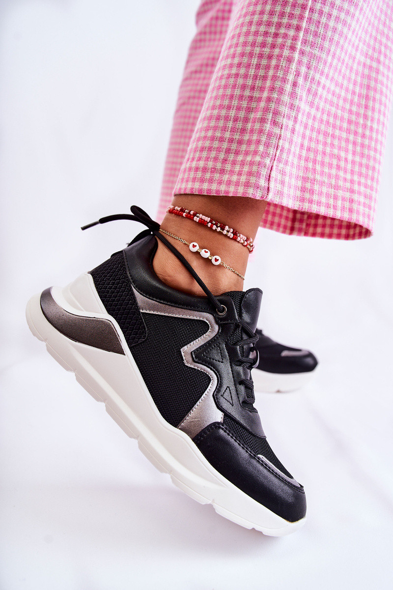 Biele športové topánky s platformou a čiernym motívom Izabell
