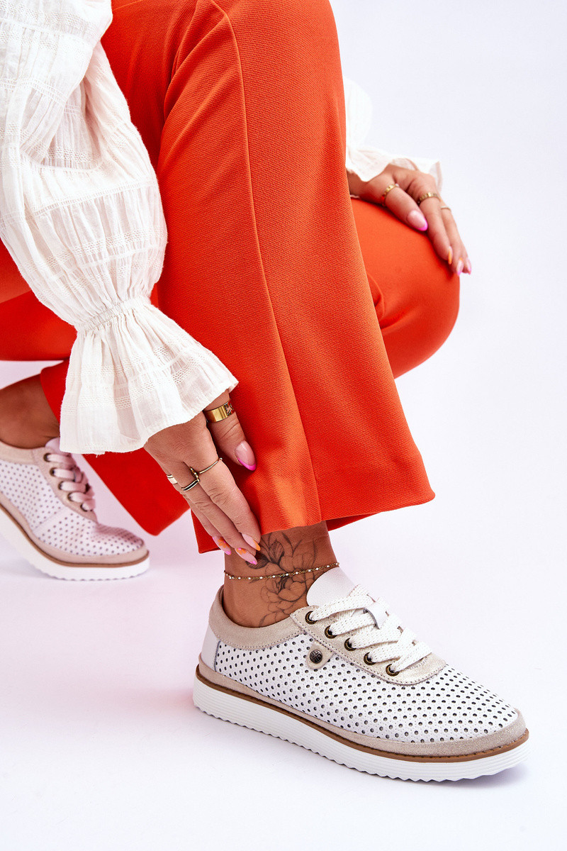 Kožené otvorené topánky športového štýlu bielo-zlaté Cantare