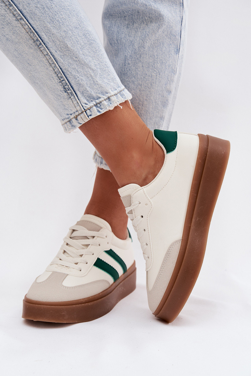 Tenisky model obuvi Dámske s platformou z eko kože biely-zelená farba Elaraven