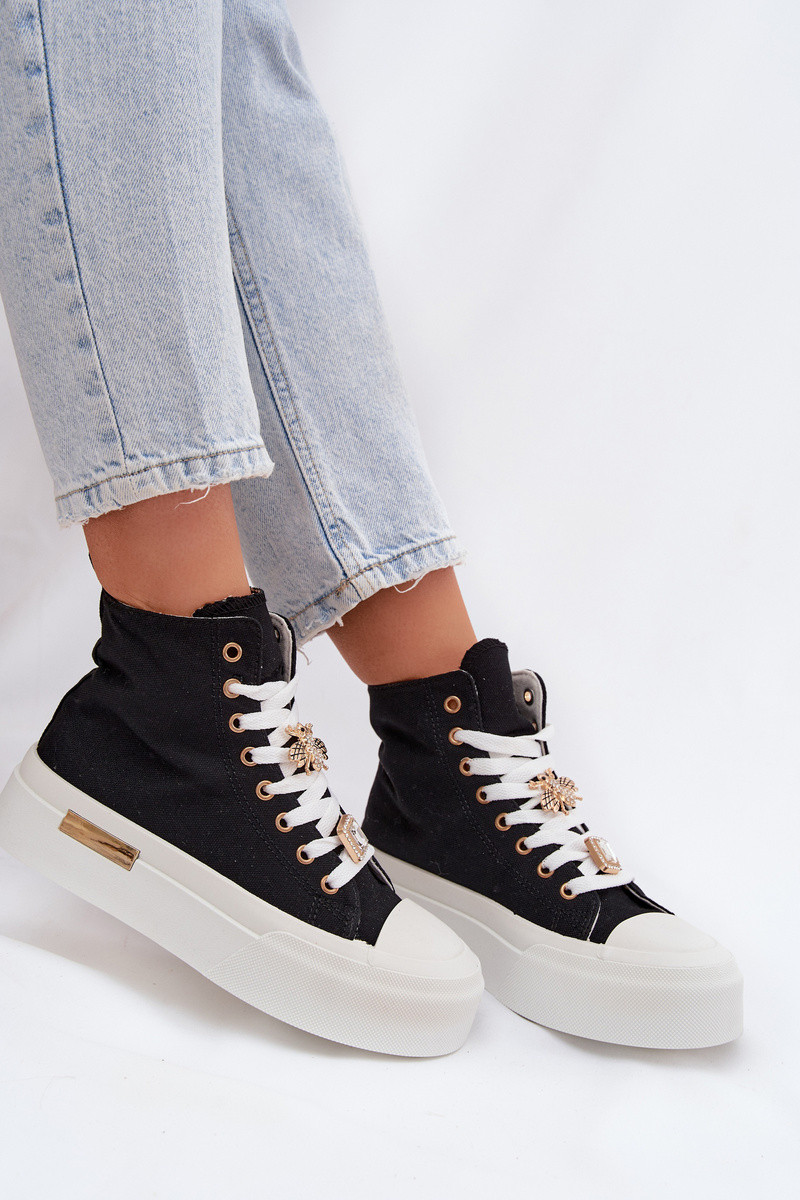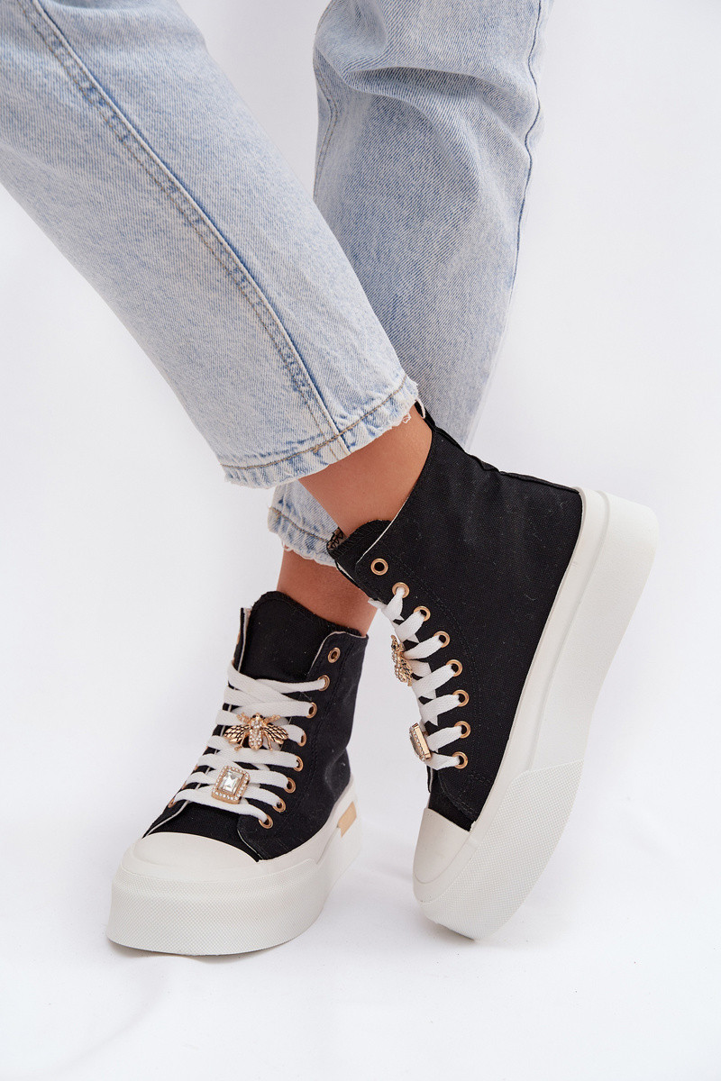 Čierne voľnočasové topánky s platformou a ozdobami „Gracella"