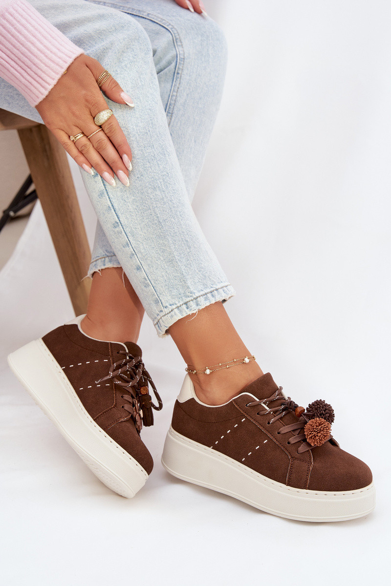Hnedé Corinna dámske platformové športové topánky s ozdobnými pom-pommi