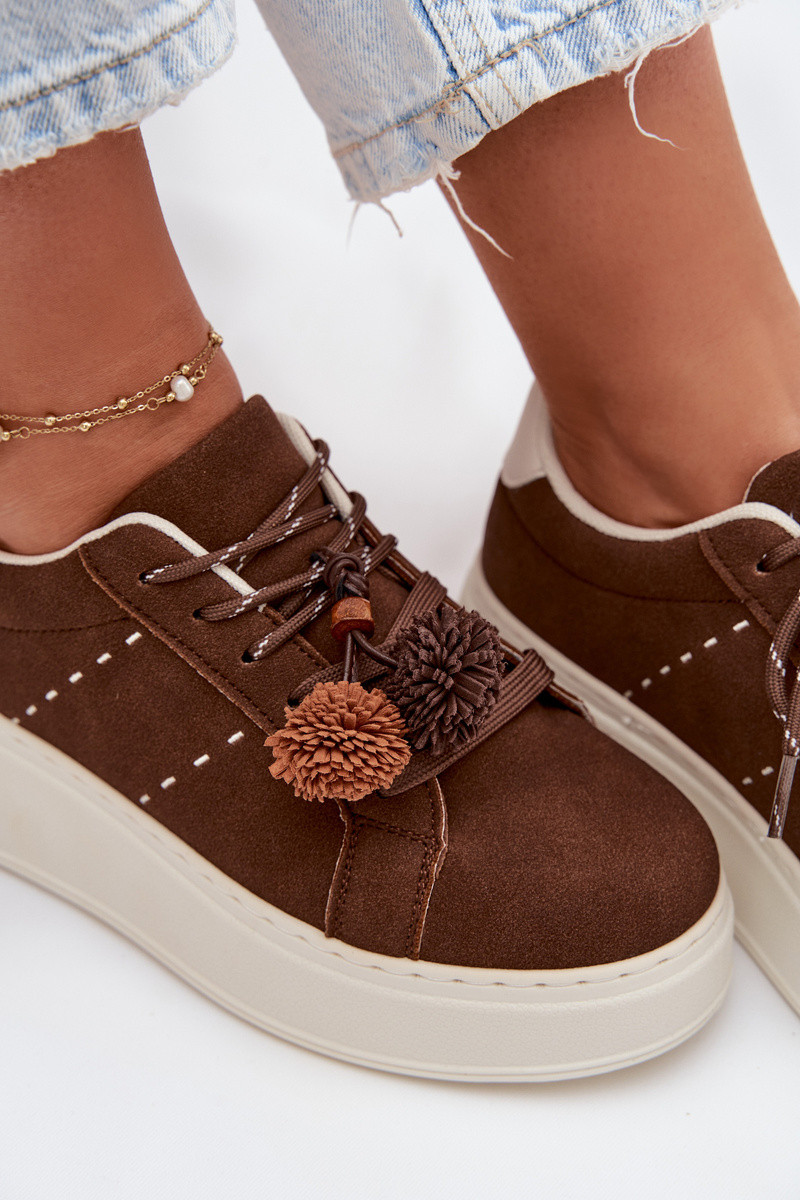 Tenisky model obuvi Dámske s platformou S Ornatemi Pomponami CzekoladoIne Corinna