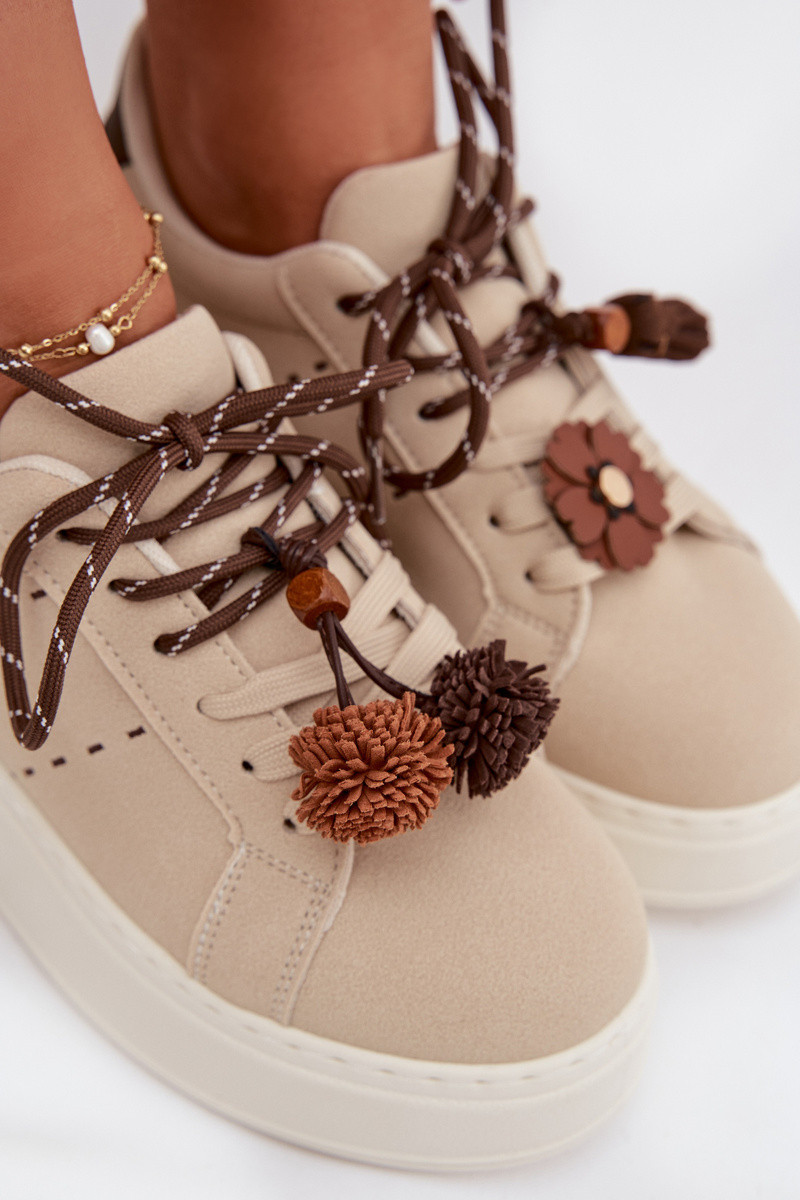 Tenisky model obuvi Dámske s platformou S Ornatemi Pomponami béžová Corinna