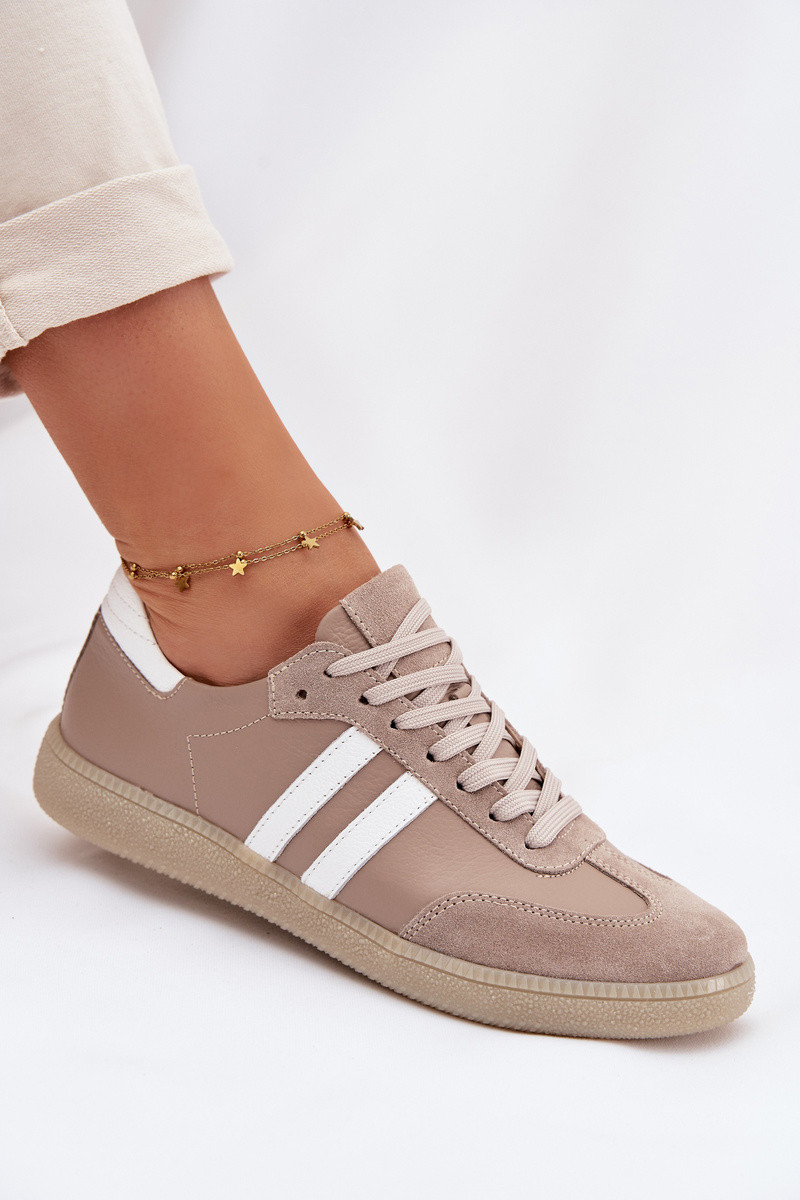 Zazoo N1068 nízke športové topánky pre ženy z umelej kože pieskovej farby