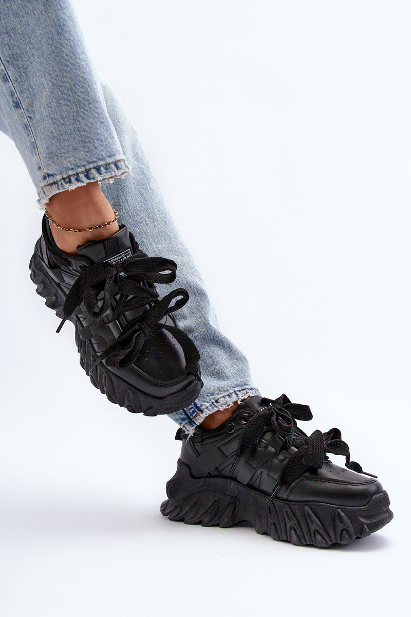 Tenisky model obuvi Dámske s trendovou masívnou podrážkou čierna Ellerai