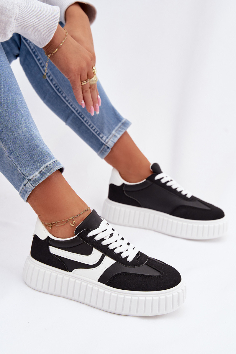 Dámske tenisky s platformou z umelej semišovej látky čiernej farby Cadrina