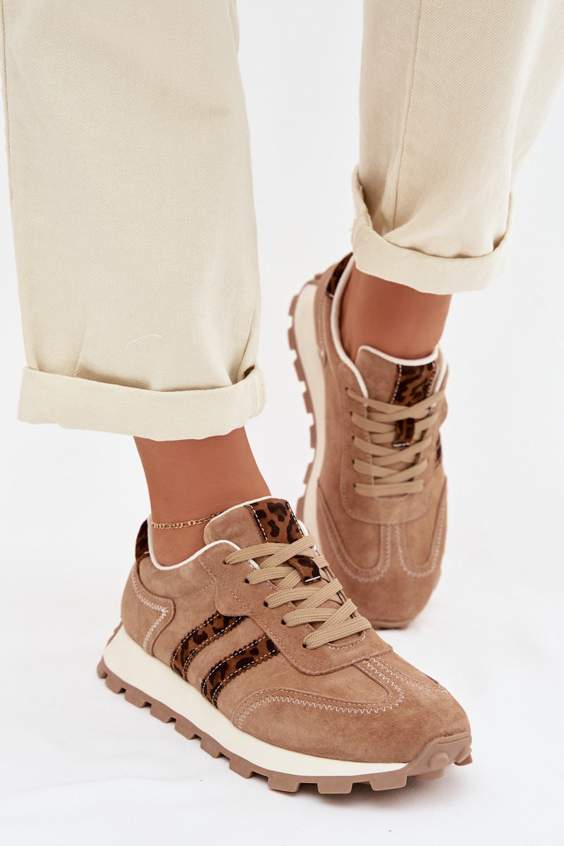 Ženské semišové tenisky s platformou a leopardím vzorom S.Barski LR61-7071 hnedé