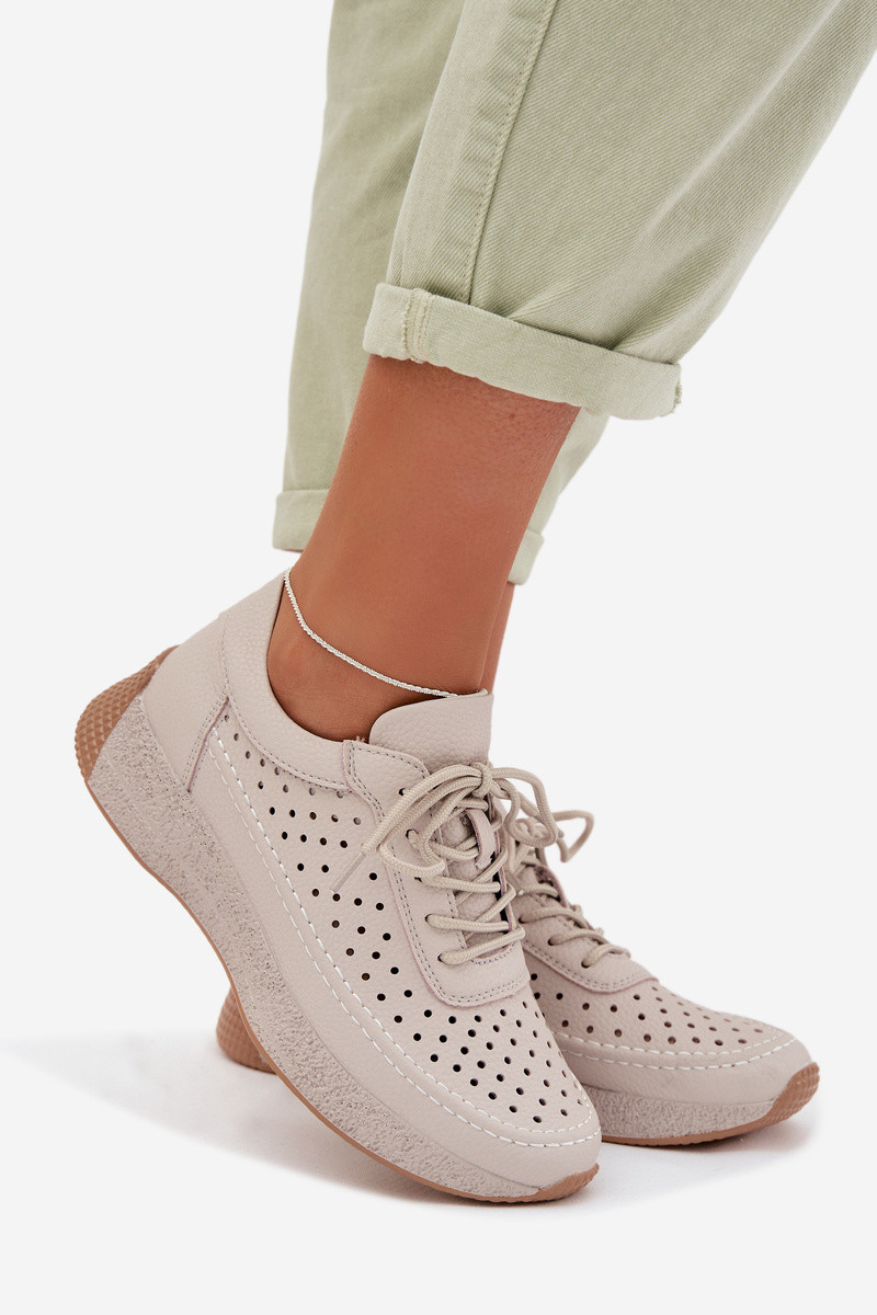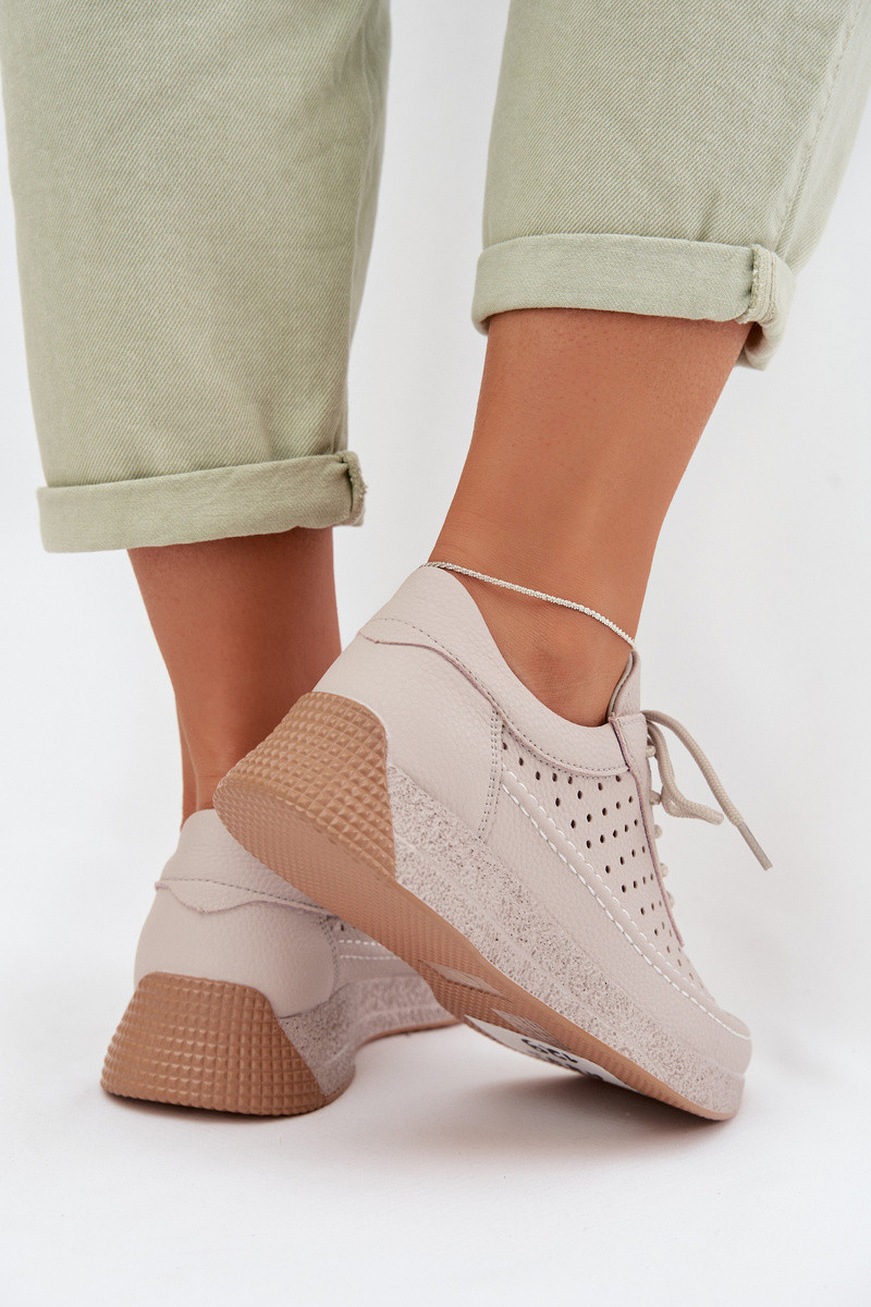 Kožené dámske športové topánky s otvorenými prvkami Sergio Leone SP-013 šedej farby