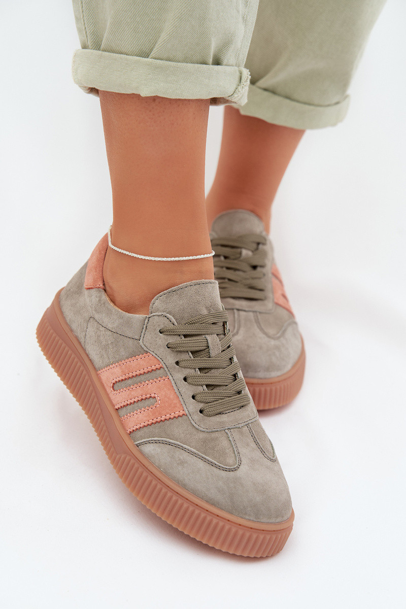 Tenisky model obuvi DámskeZapnutéturalnego zo semišuu zelená farba Delyssia