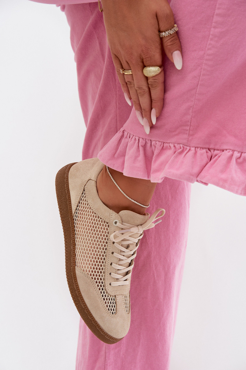 Semišové dámske športové topánky s mrežou Zazoo N1142 pieskovej farby