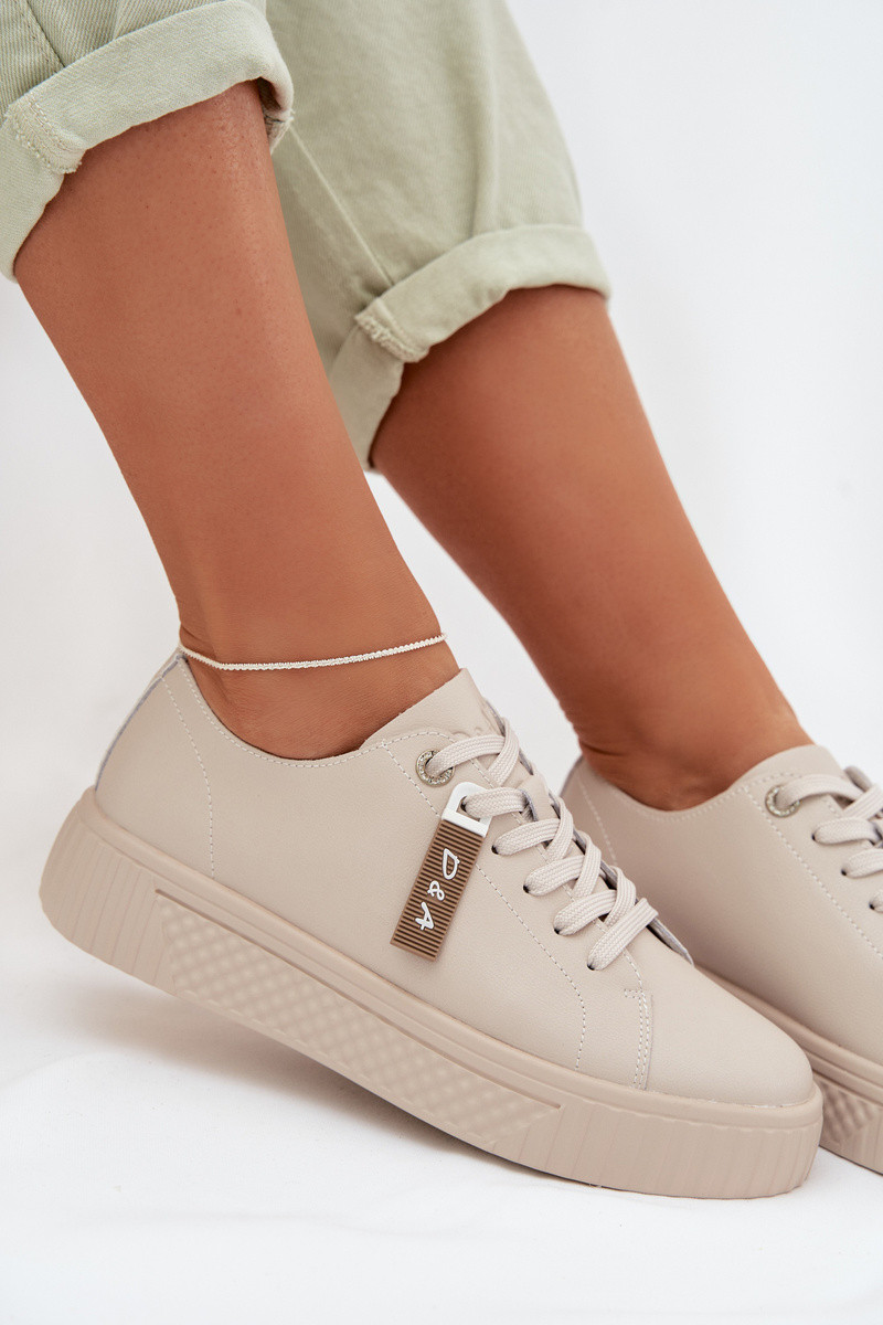 Tenisky model obuvi DámskeZapnutéturalnej Skóry D&A GR61-5591 béžová