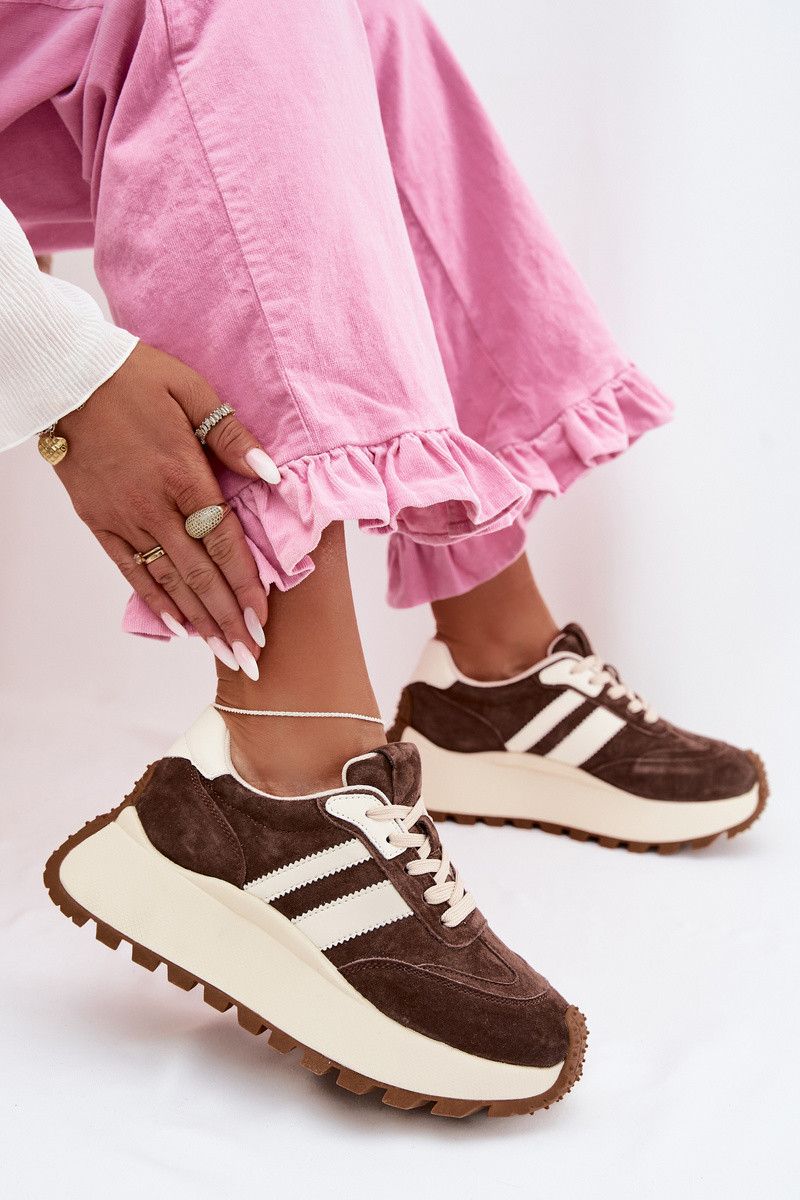 Semišové sneakers s platformou D&A GR61-5986 čokoládovej farby