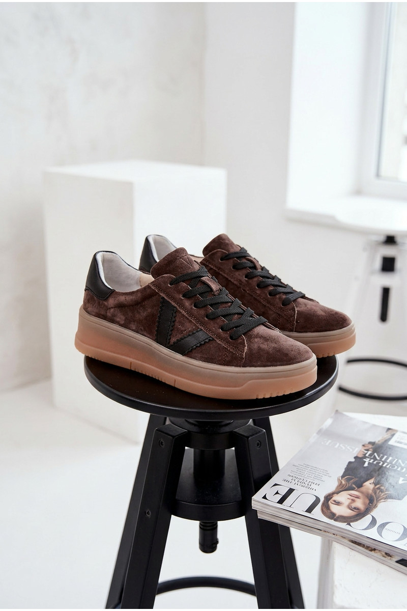 Tenisky model obuvi DámskeZapnutéturalnego zo semišuu s platformou Vinceza 79597 Hnedá farba