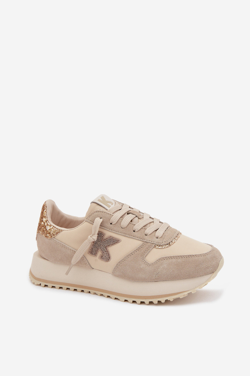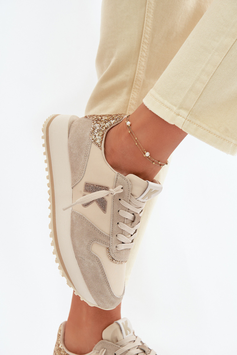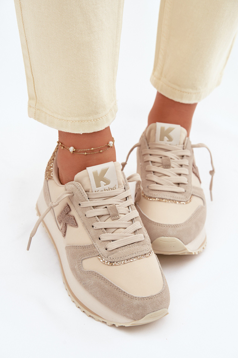 Kožené zo semišu Tenisky model obuvi Dámske s platformou Kobbo 100103 béžová