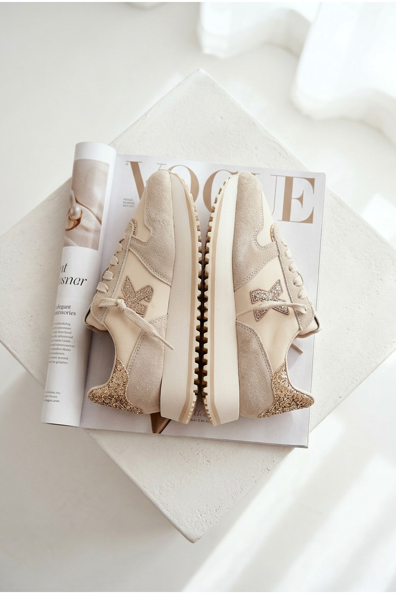 Kožené zo semišu Tenisky model obuvi Dámske s platformou Kobbo 100103 béžová