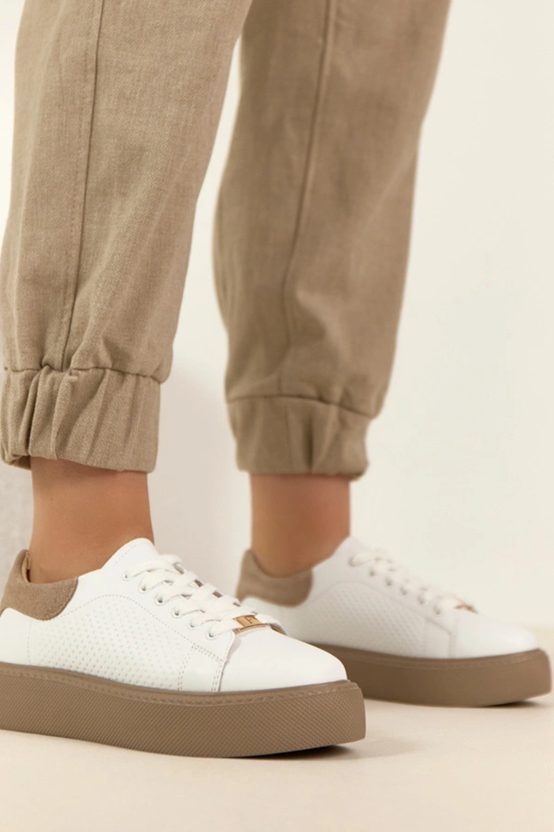 Sneakers modelové topánky ženské s platformou pieskové Dolistana