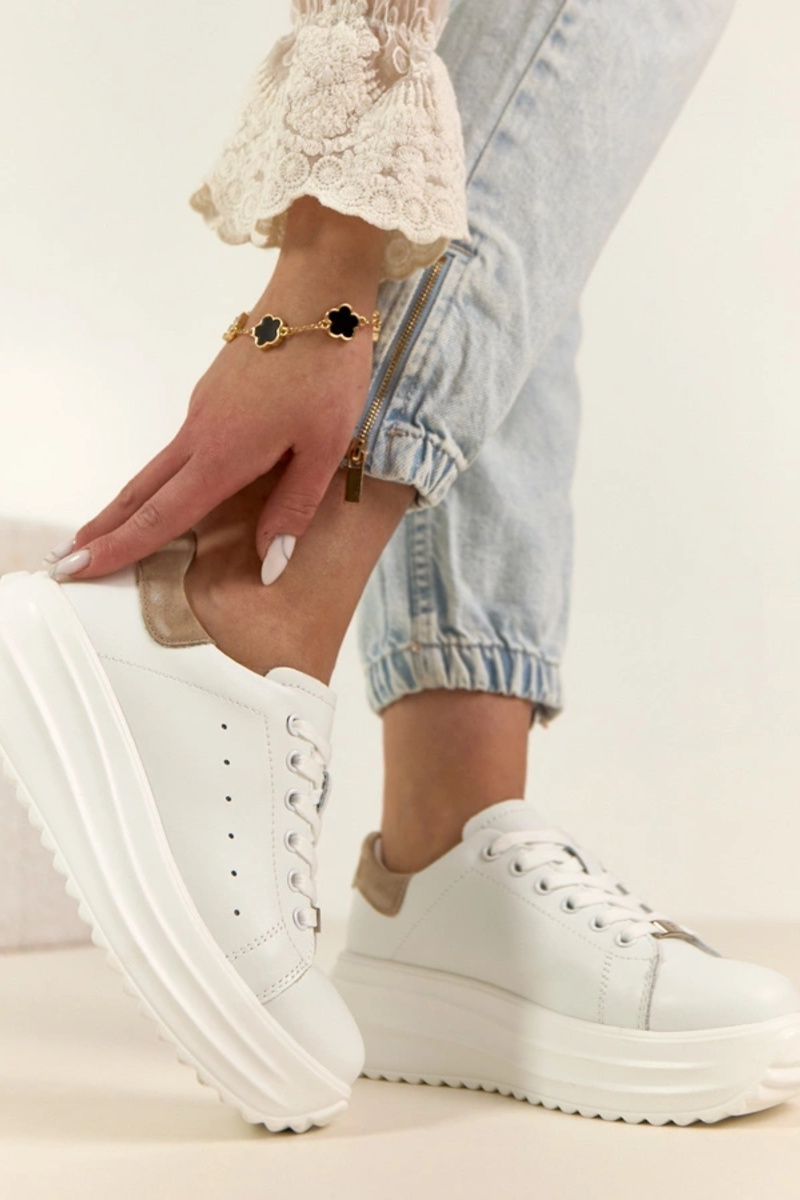 Biele kožené tenisky s platformou Filippo