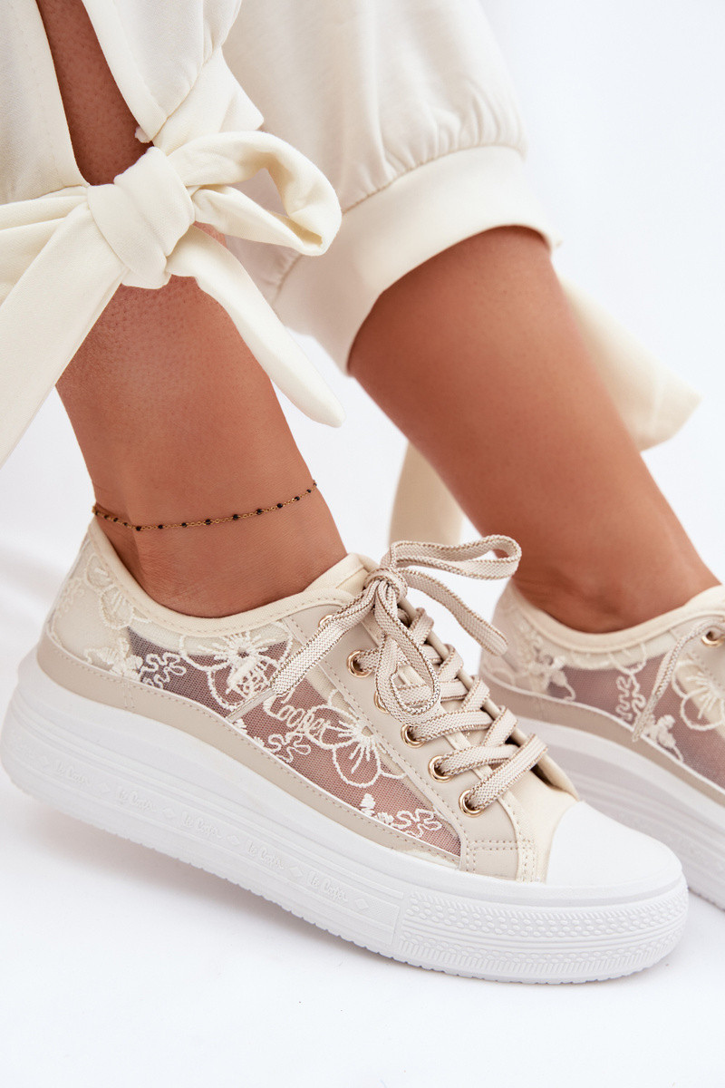 Voľnočasové topánky s šnúrkami a platformou Lee Cooper LCIN-26-44-4481 pieskové
