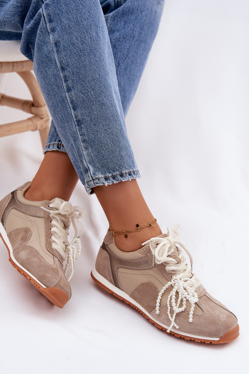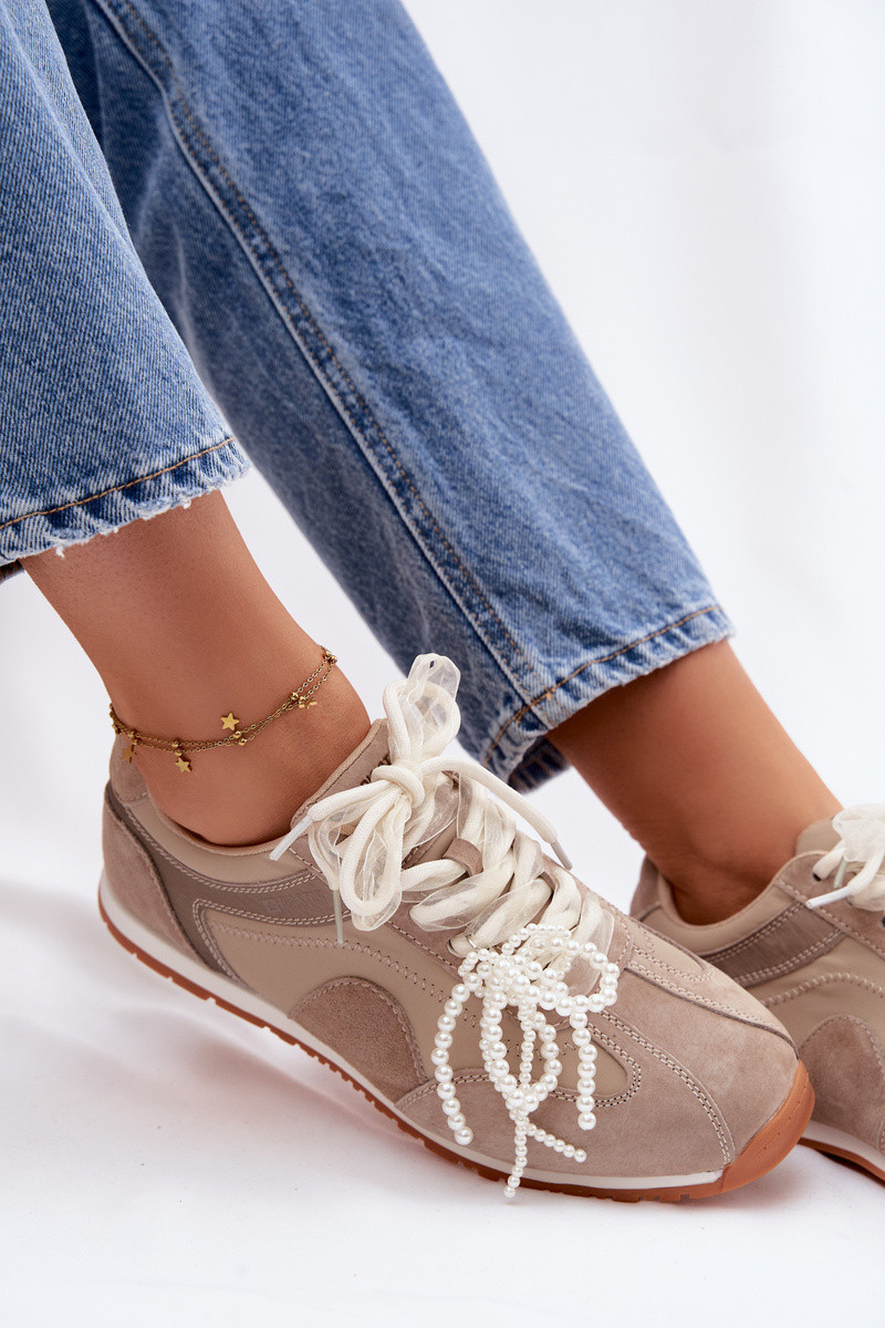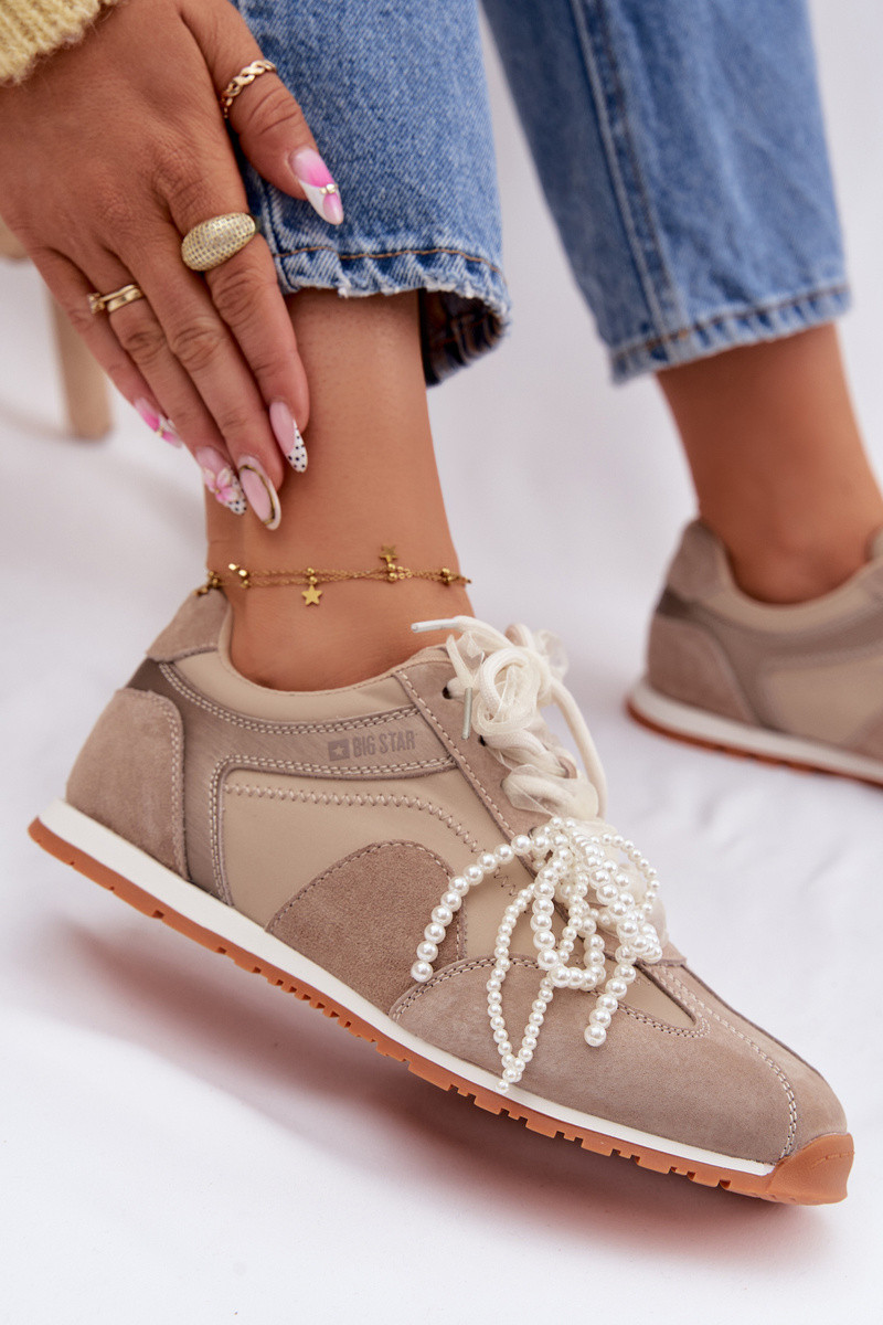 Dámske semišové športové topánky Big Star TT274677 v pieskovej farbe