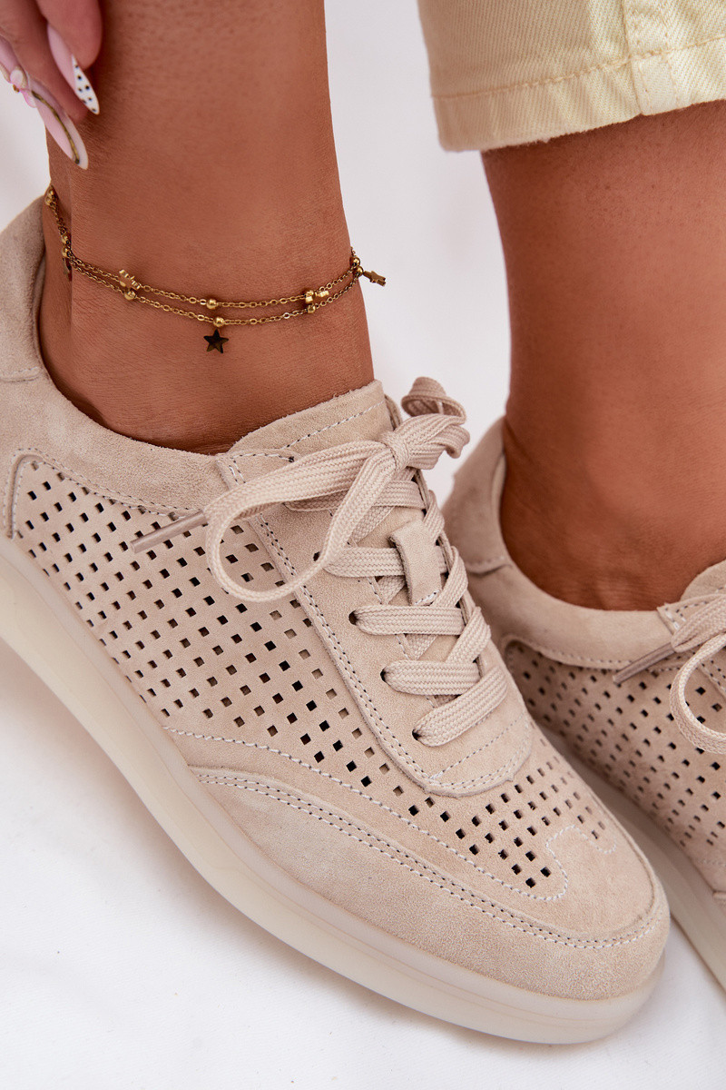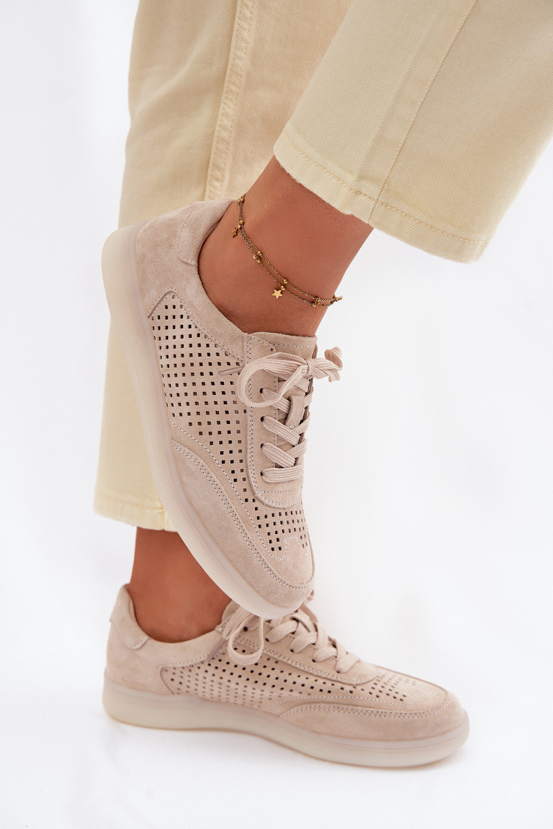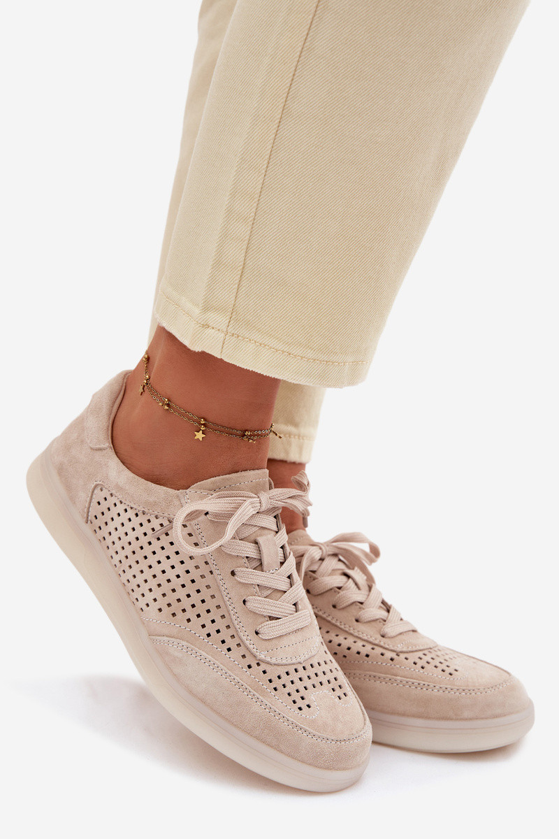 Kožené zo semišu Tenisky model obuvi Dámske s prvkami prelamovania béžová Almora