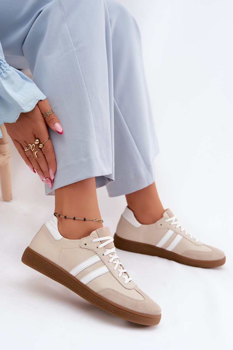 Zazoo N1068 kožené nízke tenisky pre ženy v pieskovej farbe