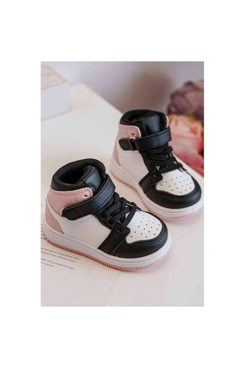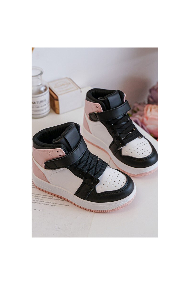 Vysoké detské športové topánky bielo-ružovej farby Teredite