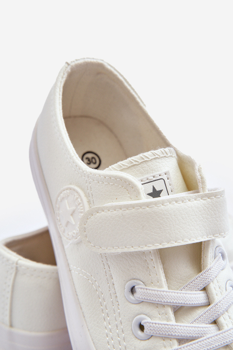 Kožené detské voľnočasové topánky s lepkavými zapínaniami bielej farby Delmara