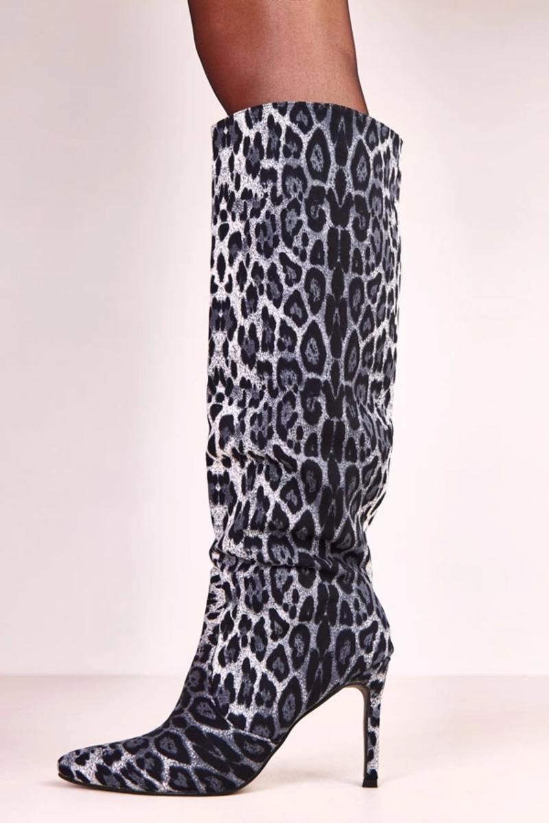 Čierne leopardie vzorované vysoké čižmy na tenkom podpätku Adrienne