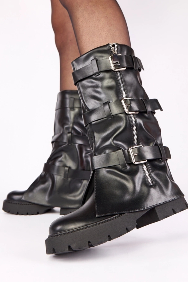 Čierne čižmy s platformou a ohnutým vrchom Colina