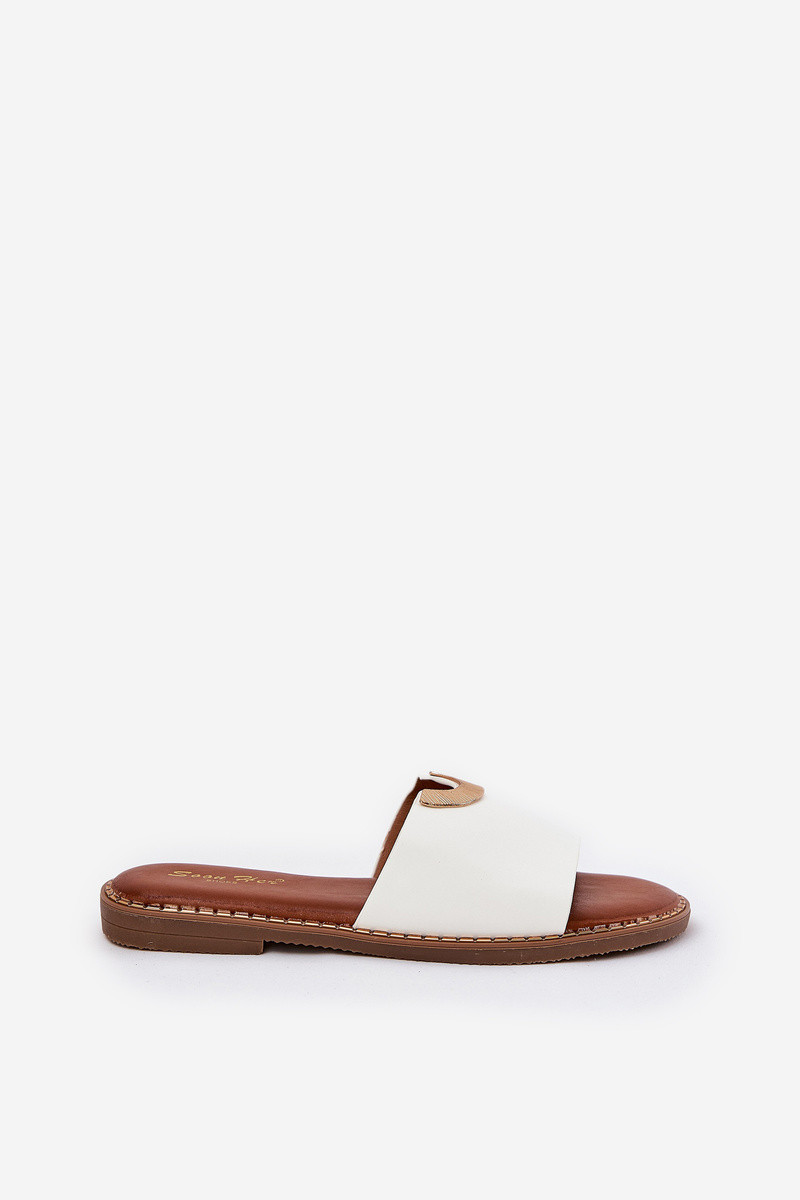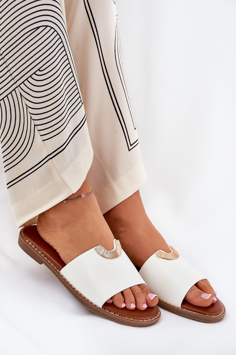 Dámske biele šľapky z umelej kože s ozdobnými detailmi, „Mevith"