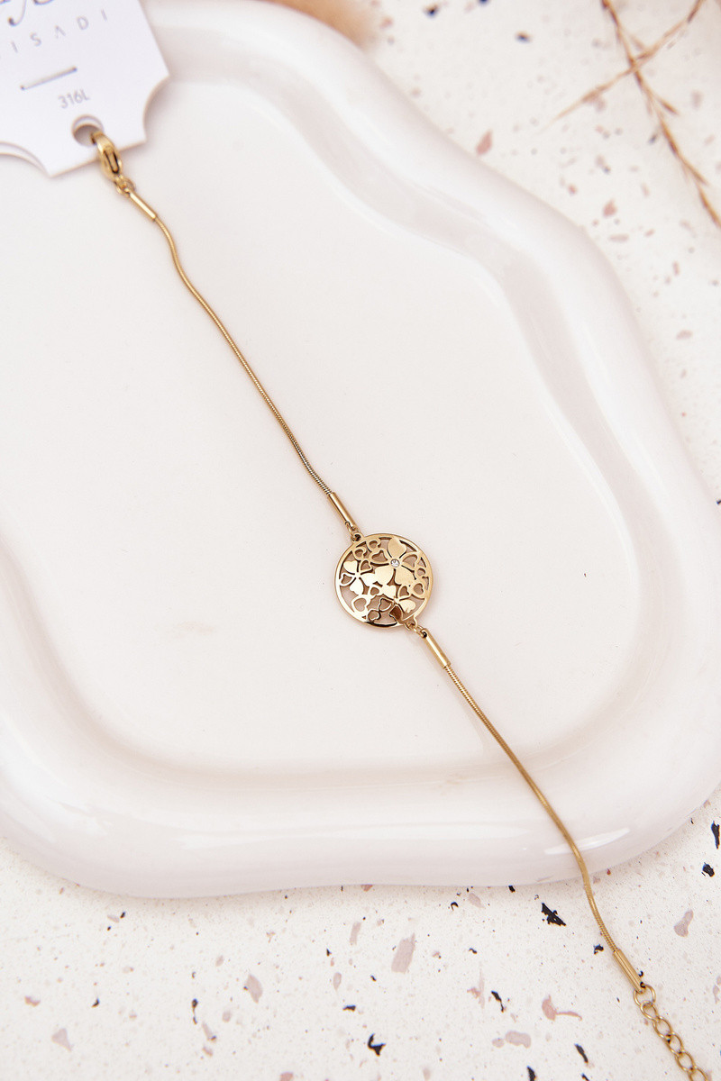 Náramok Dámske S príveskom Kółkos kvetinovými motívmiuszkami zlatej farby