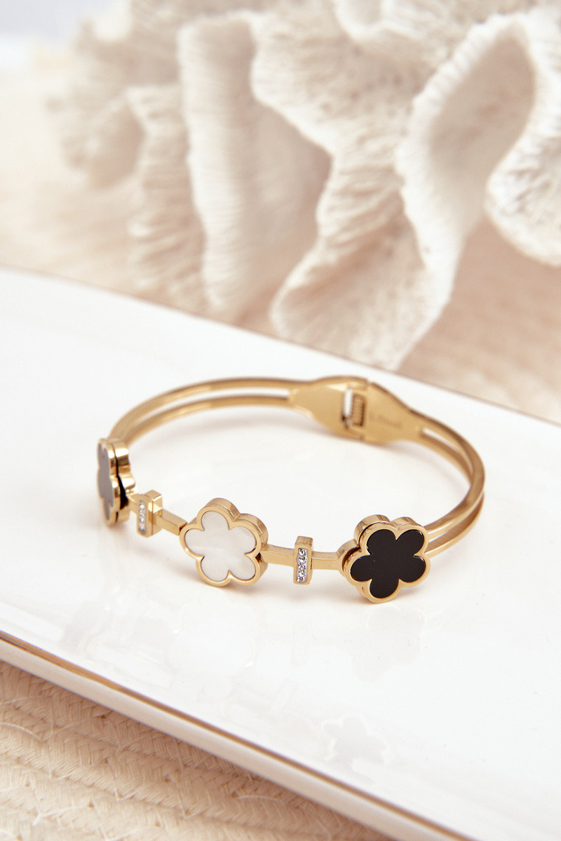 Dámsky náramok s kvietkami z nehrdzavejúcej ocele zlaté