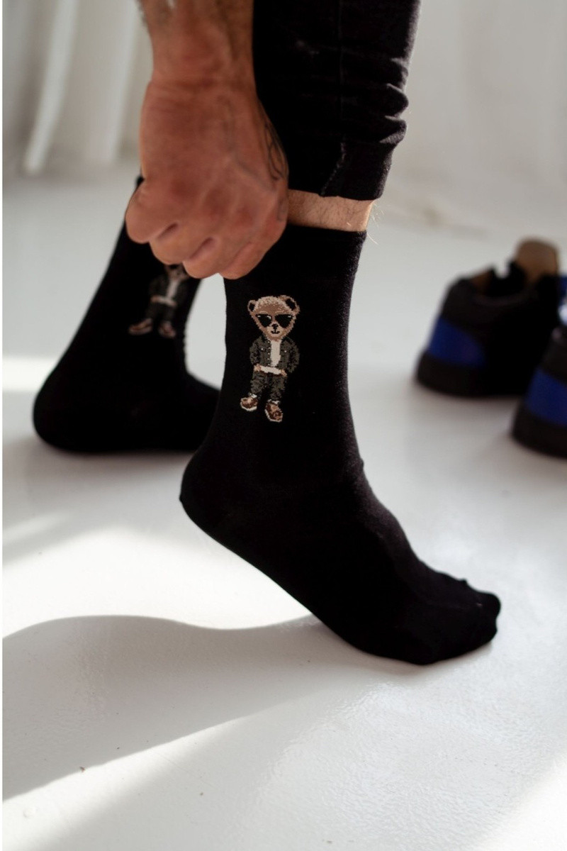 Pánske ponožky s medvedíkmi na okuliaroch čiernej farby