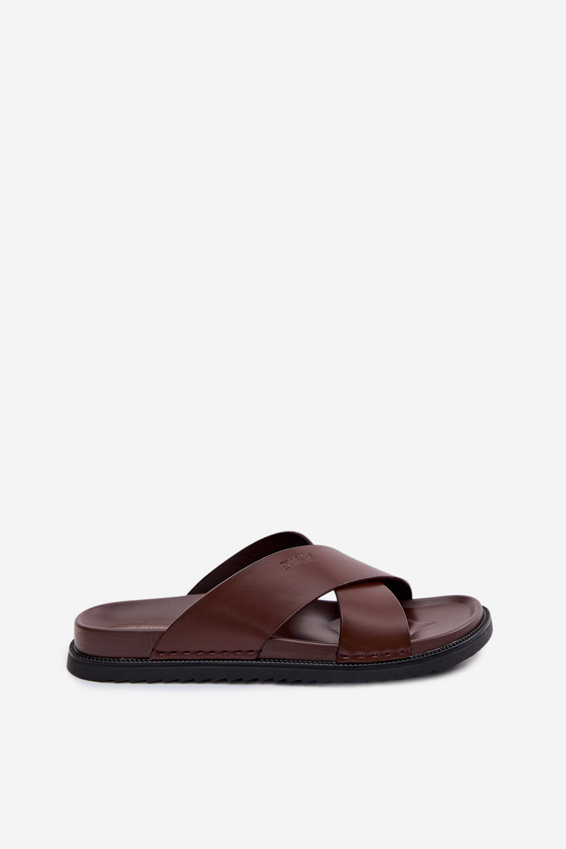 Kožené šľapky pre mužov Big Star TT174218 tmavohnedej farby