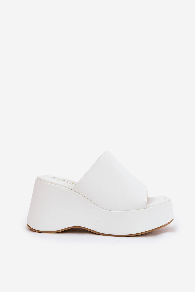 Eko Kožené papuče Dámske s platformou I Koturnie biela farba Kisoffi