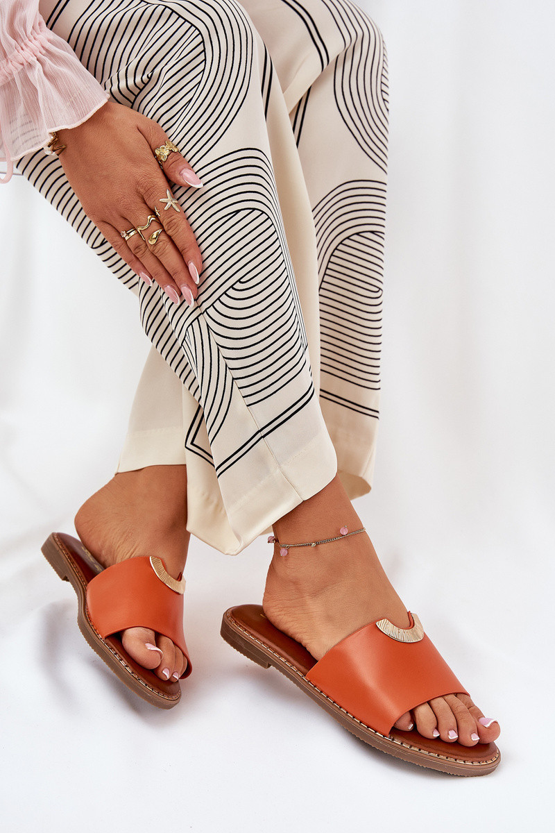 Dámske papuče z umelej kože s ozdobnými detailmi oranžovej farby Mevith