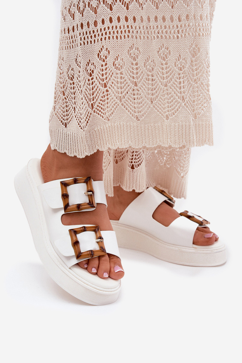 Dámske šľapky z umelej kože s platformou a sponami Xanivia biele