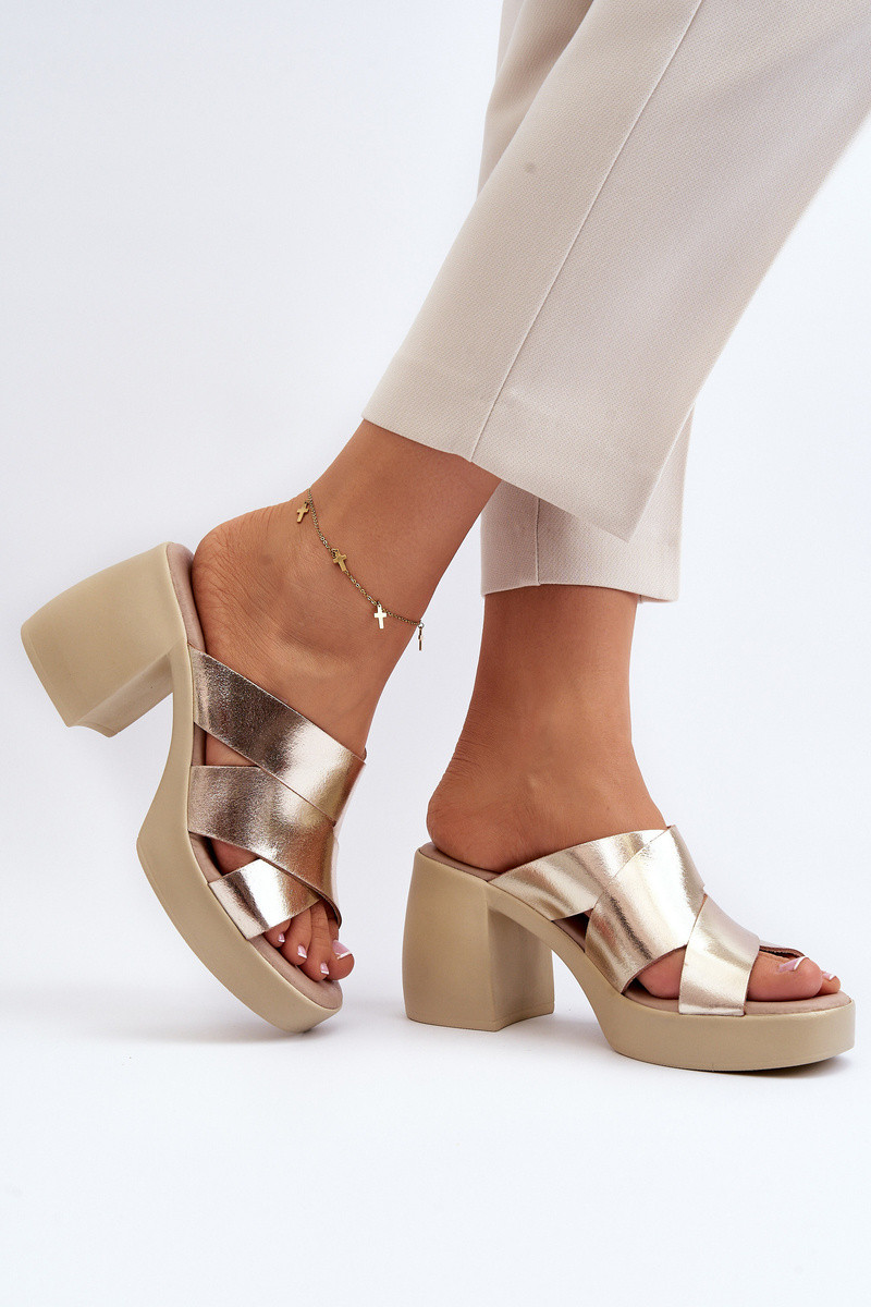 Zazoo 40373 kožené šľapky klocke zlatej farby